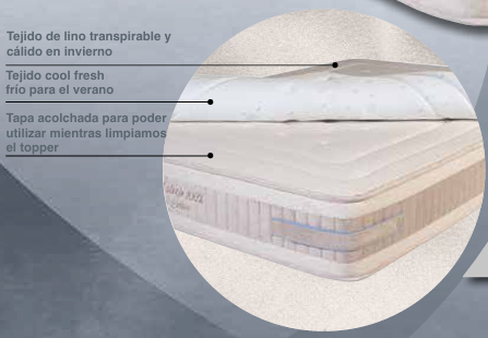 • Topper relleno de fibras 100% naturales: lino, lana y algodón.