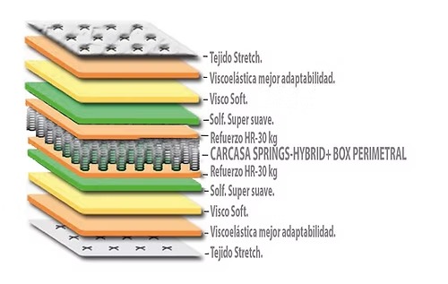 Carcasa híbrida (Springs-hybrid), con la resistencia del muelle bicónico y el confort del muelle ensacado.
